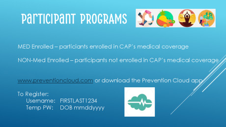 Our goal at CAP is to help you make informed decisions about your health by providing the tools and resources you need to succeed in achieving a healthier lifestyle. In doing so, we plan to continue to provide some great programs and extra motivation to maintain or improve your well-being.